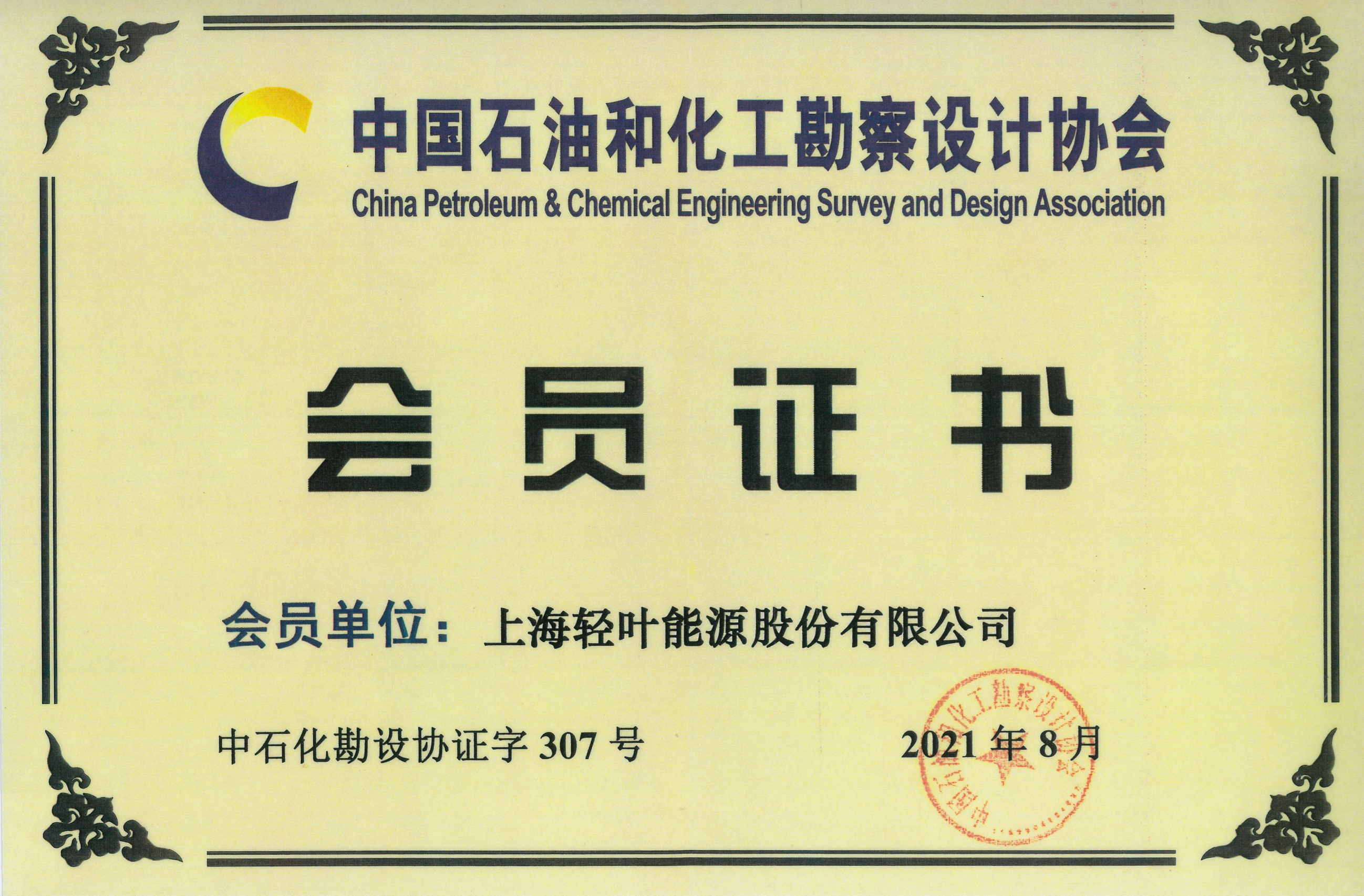 熱烈慶祝上海輕葉能源股份有限公司加入中國石油和化工勘察設(shè)計協(xié)會